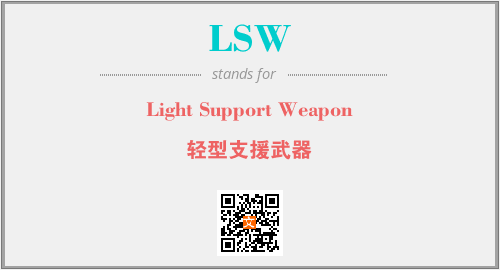 英文缩略词“LSW”经常作为“Light Support Weapon”的英文缩写来使用,中文表示:“轻型支援武器”。本文将详细介绍英文缩写词LSW所代表英文单词,其对应的中文拼音、详细解释以及在英语中的流行度。此外,还有关于缩略词LSW的分类、应用领域及相关应用示例等。