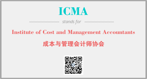 上述内容是“Institute of Cost and Management Accountants”作为“ICMA”的缩写,解释为“成本与管理会计师协会”时的信息,以及英文缩略词ICMA所代表的英文单词,其对应的中文拼音、详细解释以及在英文中的流行度和相关分类、应用领域及应用示例等。