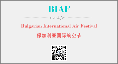 上述内容是“Bulgarian International Air Festival”作为“BIAF”的缩写,解释为“保加利亚国际航空节”时的信息,以及英文缩略词BIAF所代表的英文单词,其对应的中文拼音、详细解释以及在英文中的流行度和相关分类、应用领域及应用示例等。