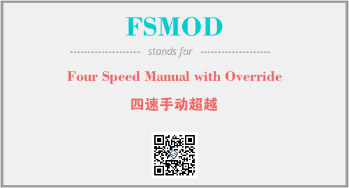 英文缩略词“FSMOD”经常作为“Four Speed Manual with Override”的英文缩写来使用,中文表示:“四速手动超越”。本文将详细介绍英文缩写词FSMOD所代表英文单词,其对应的中文拼音、详细解释以及在英语中的流行度。此外,还有关于缩略词FSMOD的分类、应用领域及相关应用示例等。