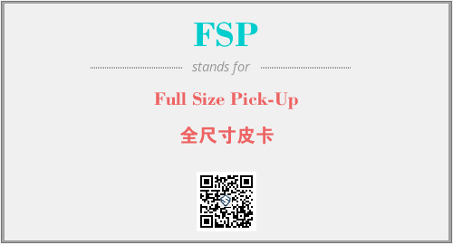 英文缩略词“FSP”经常作为“Full Size Pick-Up”的英文缩写来使用,中文表示:“全尺寸皮卡”。本文将详细介绍英文缩写词FSP所代表英文单词,其对应的中文拼音、详细解释以及在英语中的流行度。此外,还有关于缩略词FSP的分类、应用领域及相关应用示例等。
