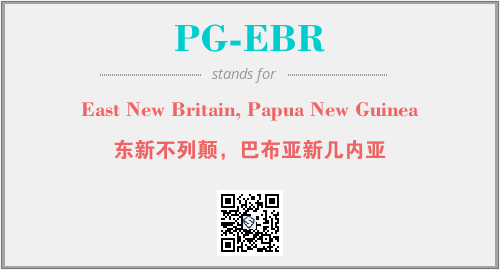 上述内容是“East New Britain, Papua New Guinea”作为“PG-EBR”的缩写,解释为“东新不列颠,巴布亚新几内亚”时的信息,以及英文缩略词PG-EBR所代表的英文单词,其对应的中文拼音、详细解释以及在英文中的流行度和相关分类、应用领域及应用示例等。