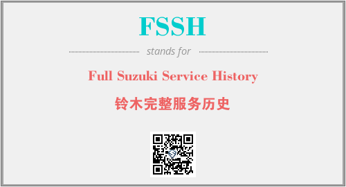 英文缩略词“FSSH”经常作为“Full Suzuki Service History”的英文缩写来使用,中文表示:“铃木完整服务历史”。本文将详细介绍英文缩写词FSSH所代表英文单词,其对应的中文拼音、详细解释以及在英语中的流行度。此外,还有关于缩略词FSSH的分类、应用领域及相关应用示例等。