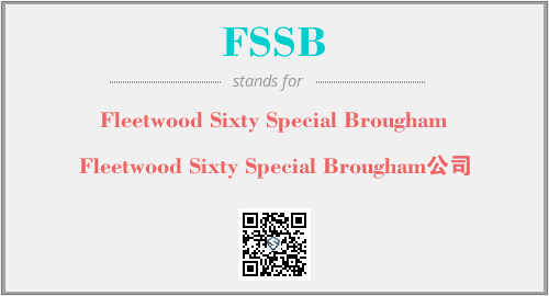 英文缩略词“FSSB”经常作为“Fleetwood Sixty Special Brougham”的英文缩写来使用,中文表示:“Fleetwood Sixty Special Brougham公司”。本文将详细介绍英文缩写词FSSB所代表英文单词,其对应的中文拼音、详细解释以及在英语中的流行度。此外,还有关于缩略词FSSB的分类、应用领域及相关应用示例等。