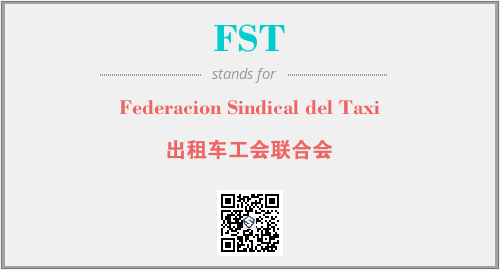 英文缩略词“FST”经常作为“Federacion Sindical del Taxi”的英文缩写来使用,中文表示:“出租车工会联合会”。本文将详细介绍英文缩写词FST所代表英文单词,其对应的中文拼音、详细解释以及在英语中的流行度。此外,还有关于缩略词FST的分类、应用领域及相关应用示例等。