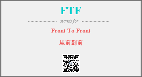 上述内容是“Front To Front”作为“FTF”的缩写,解释为“从前到前”时的信息,以及英文缩略词FTF所代表的英文单词,其对应的中文拼音、详细解释以及在英文中的流行度和相关分类、应用领域及应用示例等。