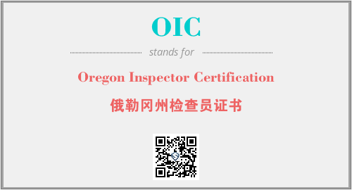 上述内容是“Oregon Inspector Certification”作为“OIC”的缩写,解释为“俄勒冈州检查员证书”时的信息,以及英文缩略词OIC所代表的英文单词,其对应的中文拼音、详细解释以及在英文中的流行度和相关分类、应用领域及应用示例等。