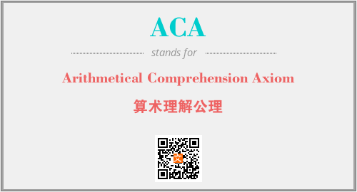 英文缩略词“ACA”经常作为“Arithmetical Comprehension Axiom”的英文缩写来使用,中文表示:“算术理解公理”。本文将详细介绍英文缩写词ACA所代表英文单词,其对应的中文拼音、详细解释以及在英语中的流行度。此外,还有关于缩略词ACA的分类、应用领域及相关应用示例等。
