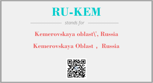 英文缩略词“RU-KEM”经常作为“Kemerovskaya oblast\', Russia”的英文缩写来使用,中文表示:“Kemerovskaya Oblast ,Russia”。本文将详细介绍英文缩写词RU-KEM所代表英文单词,其对应的中文拼音、详细解释以及在英语中的流行度。此外,还有关于缩略词RU-KEM的分类、应用领域及相关应用示例等。
