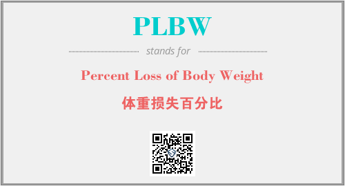 上述内容是“Percent Loss of Body Weight”作为“PLBW”的缩写,解释为“体重损失百分比”时的信息,以及英文缩略词PLBW所代表的英文单词,其对应的中文拼音、详细解释以及在英文中的流行度和相关分类、应用领域及应用示例等。