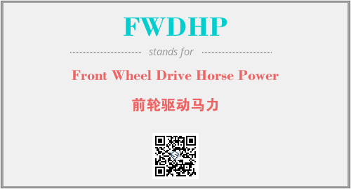 英文缩略词“FWDHP”经常作为“Front Wheel Drive Horse Power”的英文缩写来使用,中文表示:“前轮驱动马力”。本文将详细介绍英文缩写词FWDHP所代表英文单词,其对应的中文拼音、详细解释以及在英语中的流行度。此外,还有关于缩略词FWDHP的分类、应用领域及相关应用示例等。