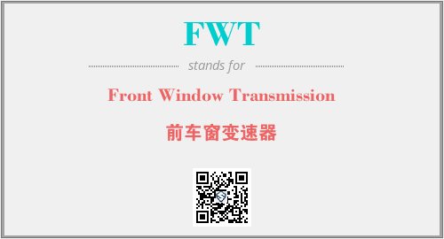 上述内容是“Front Window Transmission”作为“FWT”的缩写,解释为“前车窗变速器”时的信息,以及英文缩略词FWT所代表的英文单词,其对应的中文拼音、详细解释以及在英文中的流行度和相关分类、应用领域及应用示例等。
