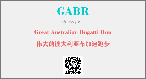 英文缩略词“GABR”经常作为“Great Australian Bugatti Run”的英文缩写来使用,中文表示:“伟大的澳大利亚布加迪跑步”。本文将详细介绍英文缩写词GABR所代表英文单词,其对应的中文拼音、详细解释以及在英语中的流行度。此外,还有关于缩略词GABR的分类、应用领域及相关应用示例等。
