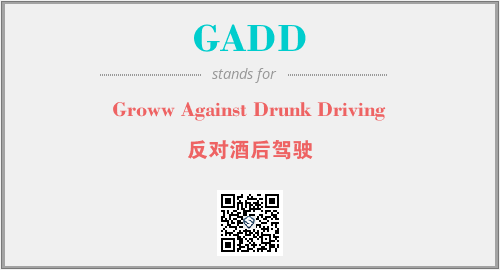 上述内容是“Groww Against Drunk Driving”作为“GADD”的缩写,解释为“反对酒后驾驶”时的信息,以及英文缩略词GADD所代表的英文单词,其对应的中文拼音、详细解释以及在英文中的流行度和相关分类、应用领域及应用示例等。