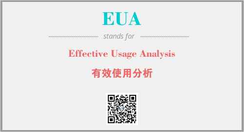 上述内容是“Effective Usage Analysis”作为“EUA”的缩写,解释为“有效使用分析”时的信息,以及英文缩略词EUA所代表的英文单词,其对应的中文拼音、详细解释以及在英文中的流行度和相关分类、应用领域及应用示例等。