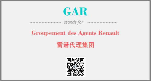 上述内容是“Groupement des Agents Renault”作为“GAR”的缩写,解释为“雷诺代理集团”时的信息,以及英文缩略词GAR所代表的英文单词,其对应的中文拼音、详细解释以及在英文中的流行度和相关分类、应用领域及应用示例等。