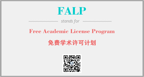 上述内容是“Free Academic License Program”作为“FALP”的缩写,解释为“免费学术许可计划”时的信息,以及英文缩略词FALP所代表的英文单词,其对应的中文拼音、详细解释以及在英文中的流行度和相关分类、应用领域及应用示例等。