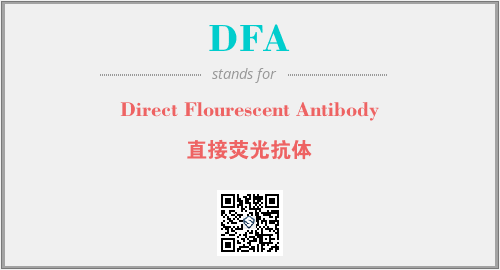 上述内容是“Direct Flourescent Antibody”作为“DFA”的缩写,解释为“直接荧光抗体”时的信息,以及英文缩略词DFA所代表的英文单词,其对应的中文拼音、详细解释以及在英文中的流行度和相关分类、应用领域及应用示例等。