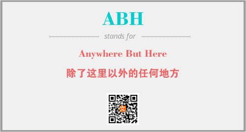 上述内容是“Anywhere But Here”作为“ABH”的缩写,解释为“除了这里以外的任何地方”时的信息,以及英文缩略词ABH所代表的英文单词,其对应的中文拼音、详细解释以及在英文中的流行度和相关分类、应用领域及应用示例等。