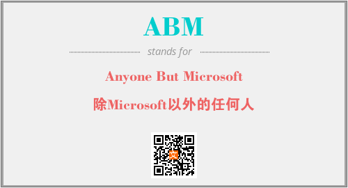 以上为Anyone But Microsoft英文缩略词ABM的中文解释,以及该英文缩写在英语的流行度、分类和应用领域方面的信息。