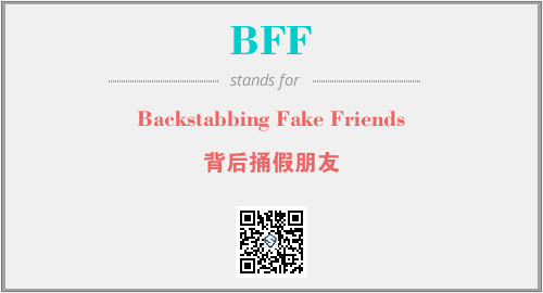 以上为Backstabbing Fake Friends英文缩略词BFF的中文解释,以及该英文缩写在英语的流行度、分类和应用领域方面的信息。