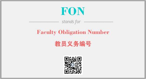 上述内容是“Faculty Obligation Number”作为“FON”的缩写,解释为“教员义务编号”时的信息,以及英文缩略词FON所代表的英文单词,其对应的中文拼音、详细解释以及在英文中的流行度和相关分类、应用领域及应用示例等。