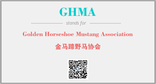 上述内容是“Golden Horseshoe Mustang Association”作为“GHMA”的缩写,解释为“金马蹄野马协会”时的信息,以及英文缩略词GHMA所代表的英文单词,其对应的中文拼音、详细解释以及在英文中的流行度和相关分类、应用领域及应用示例等。