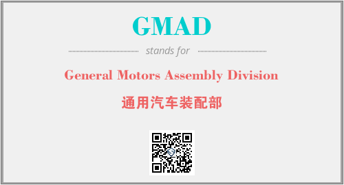 英文缩略词“GMAD”经常作为“General Motors Assembly Division”的英文缩写来使用,中文表示:“通用汽车装配部”。本文将详细介绍英文缩写词GMAD所代表英文单词,其对应的中文拼音、详细解释以及在英语中的流行度。此外,还有关于缩略词GMAD的分类、应用领域及相关应用示例等。