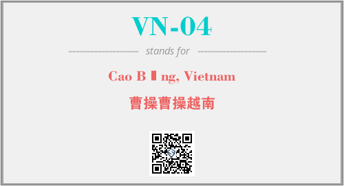 上述内容是“Cao Bằng, Vietnam”作为“VN-04”的缩写,解释为“曹操曹操越南”时的信息,以及英文缩略词VN-04所代表的英文单词,其对应的中文拼音、详细解释以及在英文中的流行度和相关分类、应用领域及应用示例等。