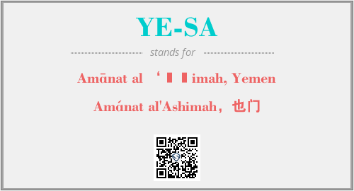 以上为Amānat al ‘Āşimah, Yemen英文缩略词YE-SA的中文解释,以及该英文缩写在英语的流行度、分类和应用领域方面的信息。