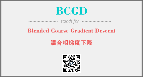 上述内容是“Blended Coarse Gradient Descent”作为“BCGD”的缩写,解释为“混合粗梯度下降”时的信息,以及英文缩略词BCGD所代表的英文单词,其对应的中文拼音、详细解释以及在英文中的流行度和相关分类、应用领域及应用示例等。