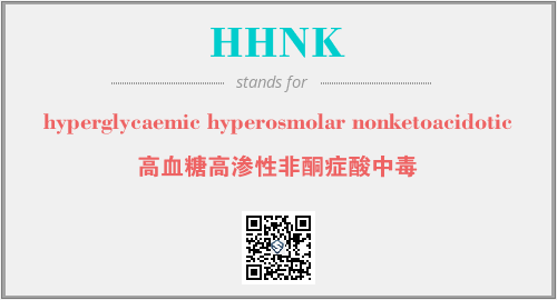 英文缩略词“HHNK”经常作为“hyperglycaemic hyperosmolar nonketoacidotic”的英文缩写来使用,中文表示:“高血糖高渗性非酮症酸中毒”。本文将详细介绍英文缩写词HHNK所代表英文单词,其对应的中文拼音、详细解释以及在英语中的流行度。此外,还有关于缩略词HHNK的分类、应用领域及相关应用示例等。