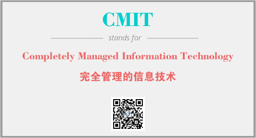 英文缩略词“CMIT”经常作为“Completely Managed Information Technology”的英文缩写来使用,中文表示:“完全管理的信息技术”。本文将详细介绍英文缩写词CMIT所代表英文单词,其对应的中文拼音、详细解释以及在英语中的流行度。此外,还有关于缩略词CMIT的分类、应用领域及相关应用示例等。