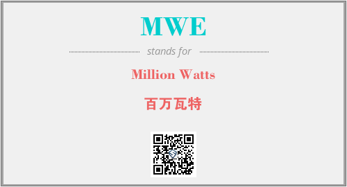 上述内容是“Million Watts”作为“MWE”的缩写,解释为“百万瓦特”时的信息,以及英文缩略词MWE所代表的英文单词,其对应的中文拼音、详细解释以及在英文中的流行度和相关分类、应用领域及应用示例等。