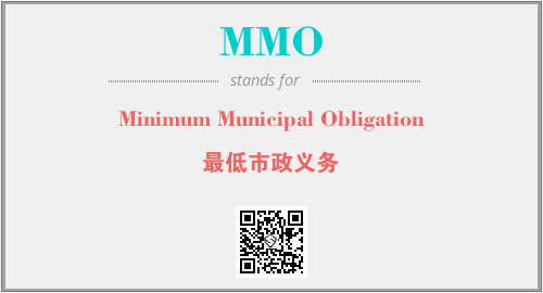 上述内容是“Minimum Municipal Obligation”作为“MMO”的缩写,解释为“最低市政义务”时的信息,以及英文缩略词MMO所代表的英文单词,其对应的中文拼音、详细解释以及在英文中的流行度和相关分类、应用领域及应用示例等。