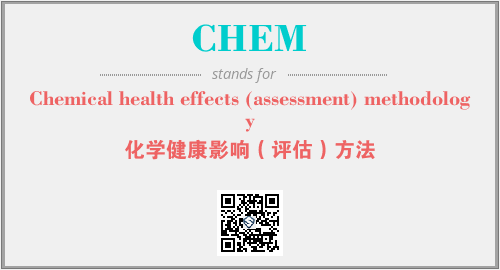 上述内容是“Chemical health effects (assessment) methodology”作为“CHEM”的缩写,解释为“化学健康影响(评估)方法”时的信息,以及英文缩略词CHEM所代表的英文单词,其对应的中文拼音、详细解释以及在英文中的流行度和相关分类、应用领域及应用示例等。