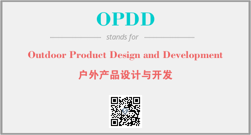 上述内容是“Outdoor Product Design and Development”作为“OPDD”的缩写,解释为“户外产品设计与开发”时的信息,以及英文缩略词OPDD所代表的英文单词,其对应的中文拼音、详细解释以及在英文中的流行度和相关分类、应用领域及应用示例等。