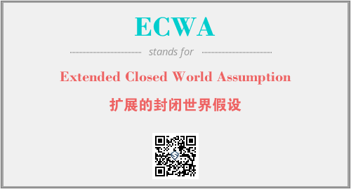 英文缩略词“ECWA”经常作为“Extended Closed World Assumption”的英文缩写来使用,中文表示:“扩展的封闭世界假设”。本文将详细介绍英文缩写词ECWA所代表英文单词,其对应的中文拼音、详细解释以及在英语中的流行度。此外,还有关于缩略词ECWA的分类、应用领域及相关应用示例等。