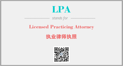 英文缩略词“LPA”经常作为“Licensed Practicing Attorney”的英文缩写来使用,中文表示:“执业律师执照”。本文将详细介绍英文缩写词LPA所代表英文单词,其对应的中文拼音、详细解释以及在英语中的流行度。此外,还有关于缩略词LPA的分类、应用领域及相关应用示例等。