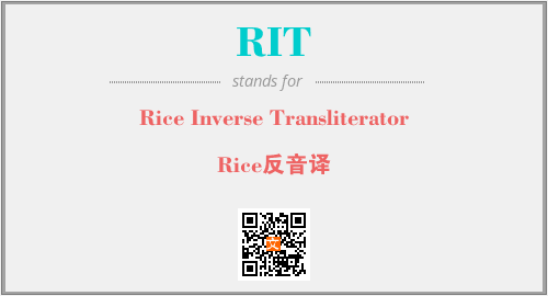 上述内容是“Rice Inverse Transliterator”作为“RIT”的缩写,解释为“Rice反音译”时的信息,以及英文缩略词RIT所代表的英文单词,其对应的中文拼音、详细解释以及在英文中的流行度和相关分类、应用领域及应用示例等。