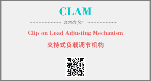 上述内容是“Clip on Load Adjusting Mechanism”作为“CLAM”的缩写,解释为“夹持式负载调节机构”时的信息,以及英文缩略词CLAM所代表的英文单词,其对应的中文拼音、详细解释以及在英文中的流行度和相关分类、应用领域及应用示例等。
