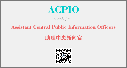 英文缩略词“ACPIO”经常作为“Assistant Central Public Information Officers”的英文缩写来使用,中文表示:“助理中央新闻官”。本文将详细介绍英文缩写词ACPIO所代表英文单词,其对应的中文拼音、详细解释以及在英语中的流行度。此外,还有关于缩略词ACPIO的分类、应用领域及相关应用示例等。