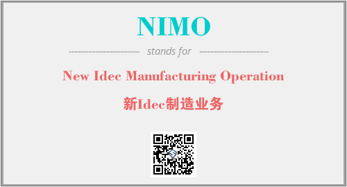 英文缩略词“NIMO”经常作为“New Idec Manufacturing Operation”的英文缩写来使用,中文表示:“新Idec制造业务”。本文将详细介绍英文缩写词NIMO所代表英文单词,其对应的中文拼音、详细解释以及在英语中的流行度。此外,还有关于缩略词NIMO的分类、应用领域及相关应用示例等。
