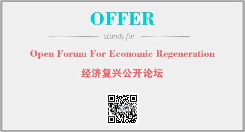 上述内容是“Open Forum For Economic Regeneration”作为“OFFER”的缩写,解释为“经济复兴公开论坛”时的信息,以及英文缩略词OFFER所代表的英文单词,其对应的中文拼音、详细解释以及在英文中的流行度和相关分类、应用领域及应用示例等。