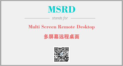 英文缩略词“MSRD”经常作为“Multi Screen Remote Desktop”的英文缩写来使用,中文表示:“多屏幕远程桌面”。本文将详细介绍英文缩写词MSRD所代表英文单词,其对应的中文拼音、详细解释以及在英语中的流行度。此外,还有关于缩略词MSRD的分类、应用领域及相关应用示例等。