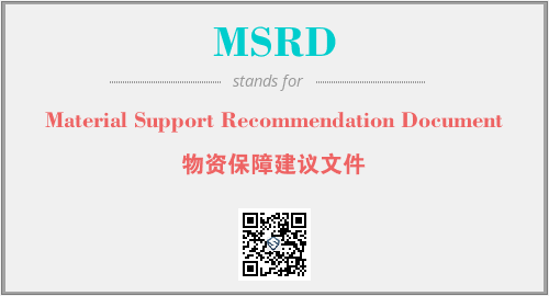 英文缩略词“MSRD”经常作为“Material Support Recommendation Document”的英文缩写来使用,中文表示:“物资保障建议文件”。本文将详细介绍英文缩写词MSRD所代表英文单词,其对应的中文拼音、详细解释以及在英语中的流行度。此外,还有关于缩略词MSRD的分类、应用领域及相关应用示例等。