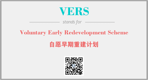 上述内容是“Voluntary Early Redevelopment Scheme”作为“VERS”的缩写,解释为“自愿早期重建计划”时的信息,以及英文缩略词VERS所代表的英文单词,其对应的中文拼音、详细解释以及在英文中的流行度和相关分类、应用领域及应用示例等。