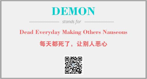以上为Dead Everyday Making Others Nauseous英文缩略词DEMON的中文解释,以及该英文缩写在英语的流行度、分类和应用领域方面的信息。