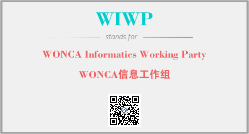 上述内容是“WONCA Informatics Working Party”作为“WIWP”的缩写,解释为“WONCA信息工作组”时的信息,以及英文缩略词WIWP所代表的英文单词,其对应的中文拼音、详细解释以及在英文中的流行度和相关分类、应用领域及应用示例等。