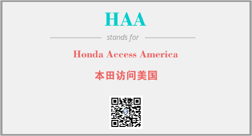 英文缩略词“HAA”经常作为“Honda Access America”的英文缩写来使用,中文表示:“本田访问美国”。本文将详细介绍英文缩写词HAA所代表英文单词,其对应的中文拼音、详细解释以及在英语中的流行度。此外,还有关于缩略词HAA的分类、应用领域及相关应用示例等。